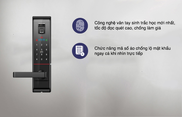 | Chức năng mở cửa | Vân tay, mã số, thẻ từ, chìa mở khẩn |